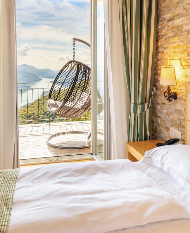 Just imagine yourselves chilling out in a relaxing bath surrounded by nature and the lake of Lugano that blends with the mountains of Malcantone. A dream that is worth drinking to that’s why you’ll be welcomed by a bottle of bubbly. You can also enjoy a relaxing area on the balcony with sunbeds for two people.